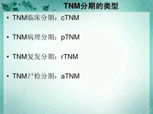 根据原发肿瘤的大小、浸润深度、范围以及是否累及邻近器官、有无淋巴结转移、有无血源性或其他远处转移确定肿瘤发展的程期或早晚。